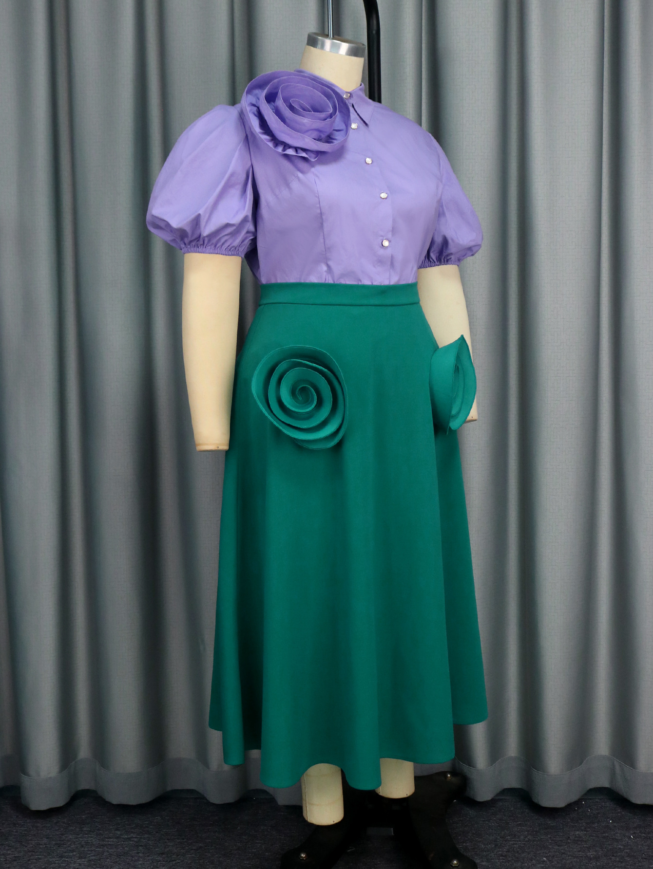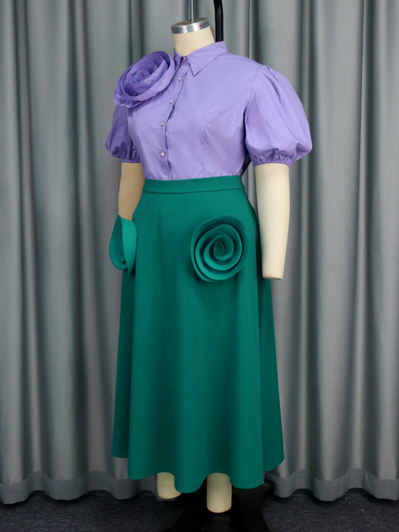 Plus-Sizes Elegant 3D Floral Blouse & Skirt Set - Two-Piece Outfit AM041031SET