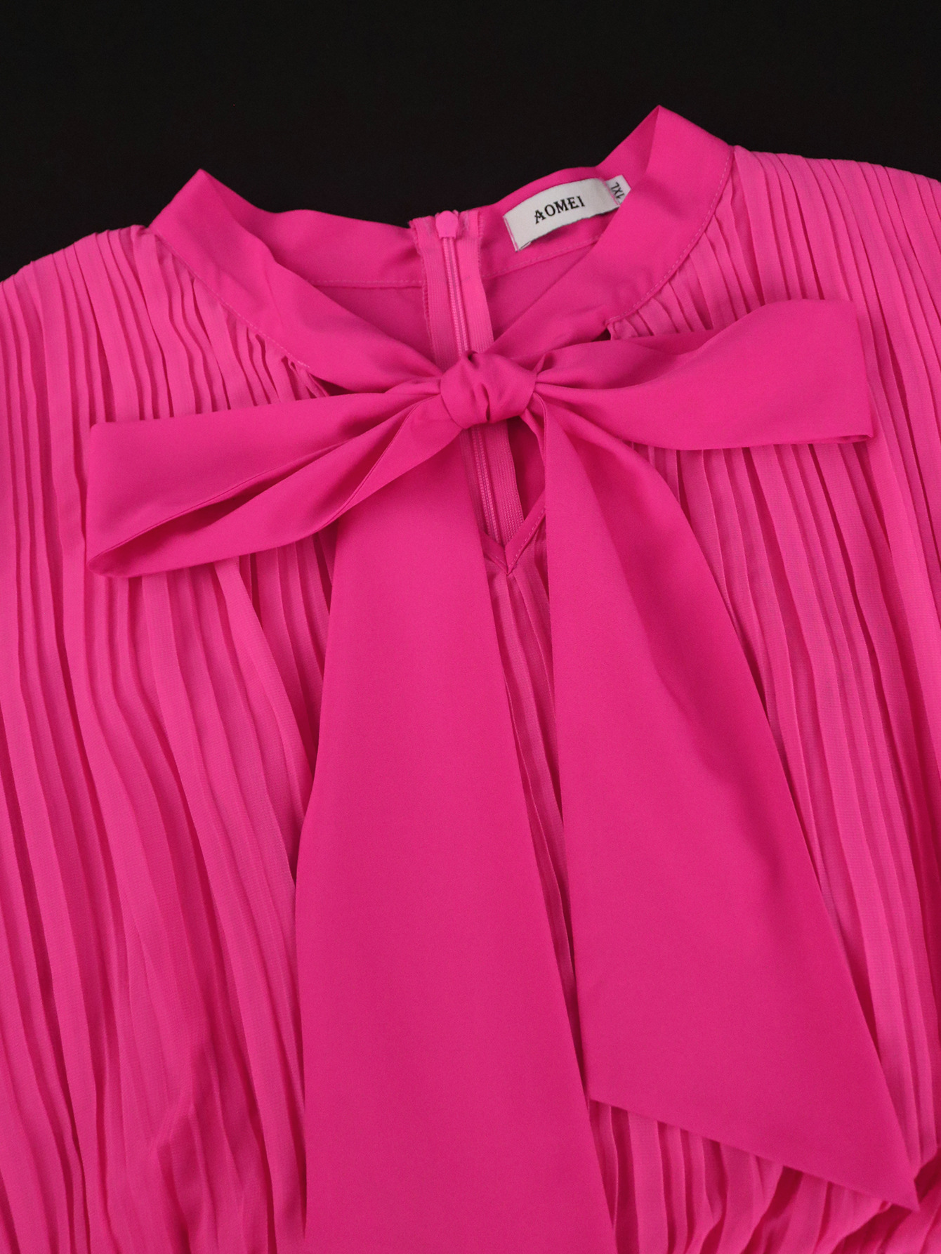 Plus-Sizes Women's Elegant Pink Pleated Tiered Midi Dress with Bow AM050410
