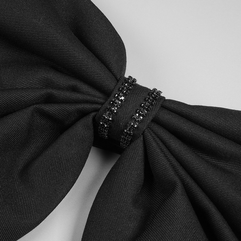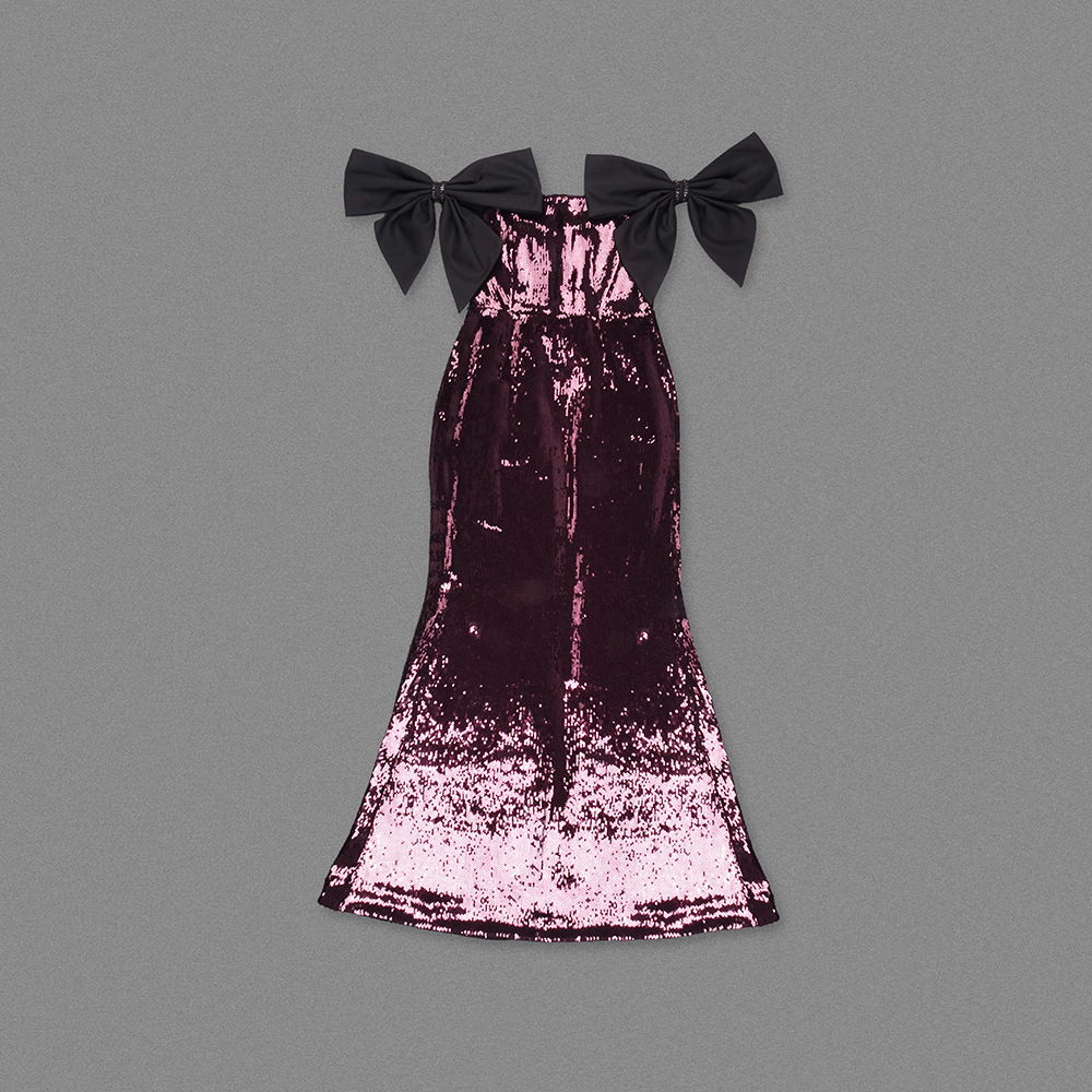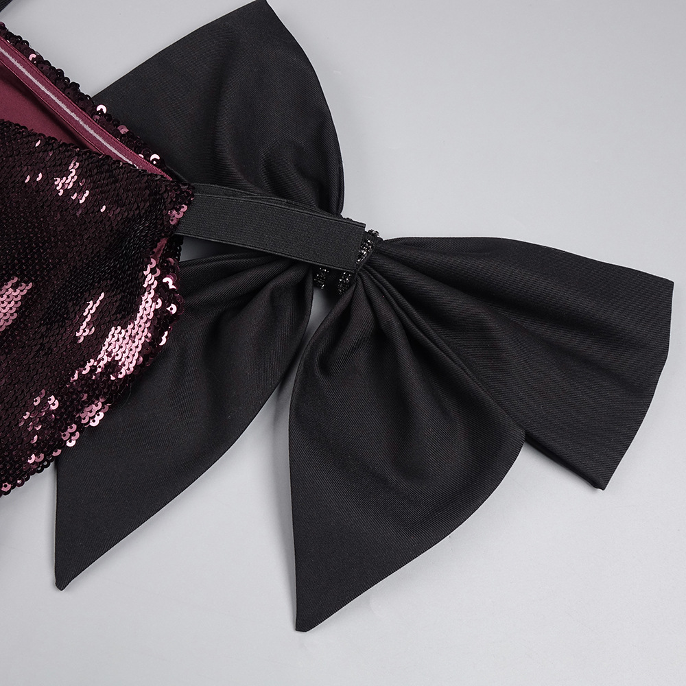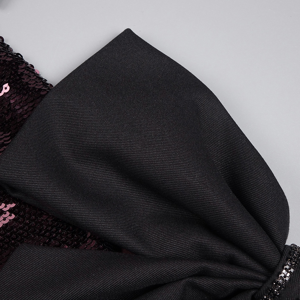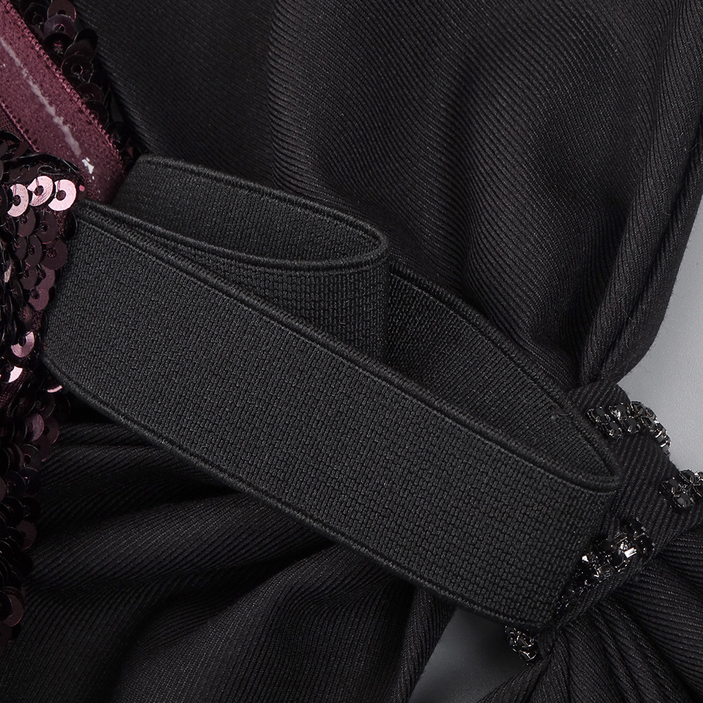 Elegant Wine Red Sequin Off-the-Shoulder Evening Gown - Formal Maxi Dress with Oversized Black Bow Sleeves for Gala & Prom Z0044
