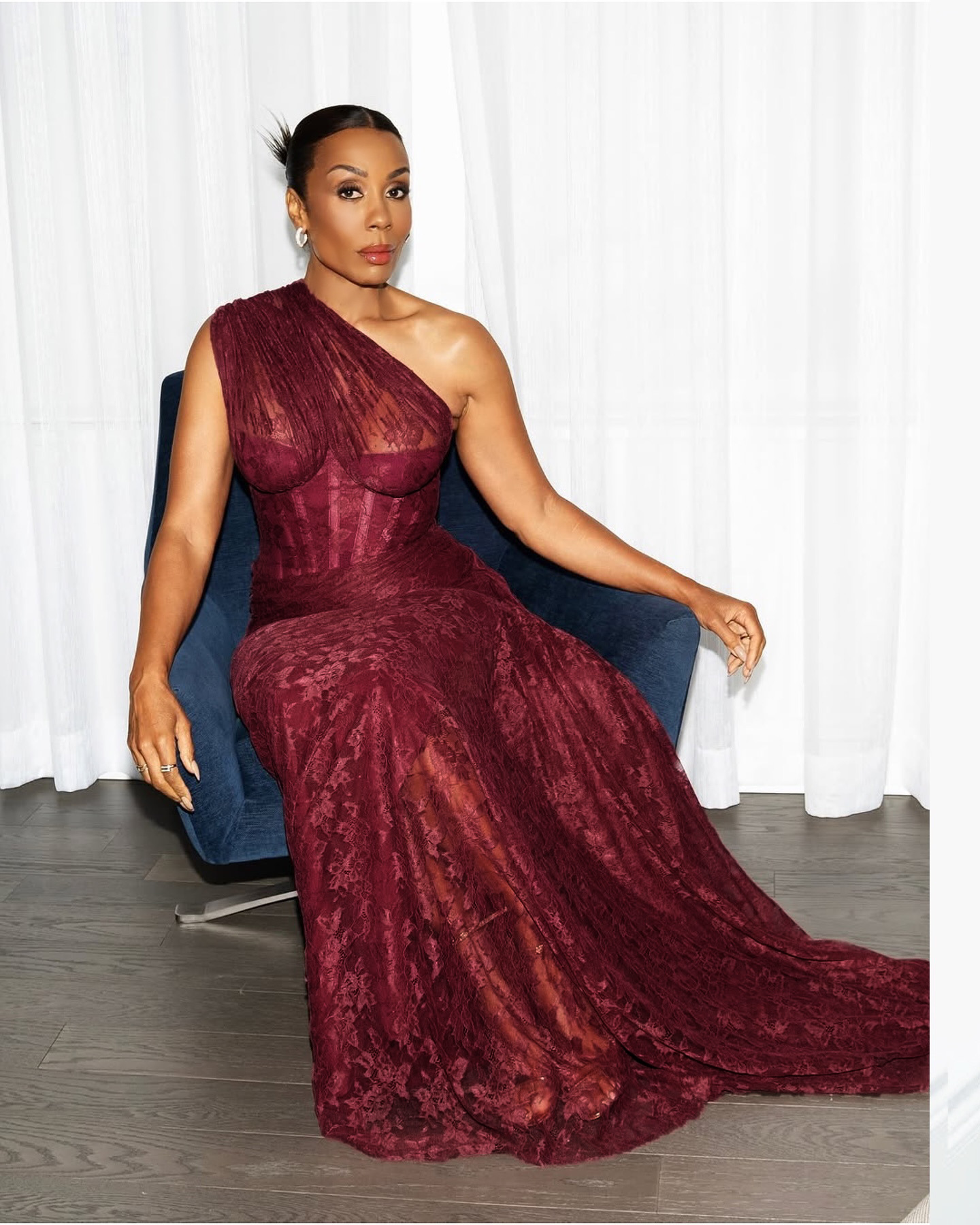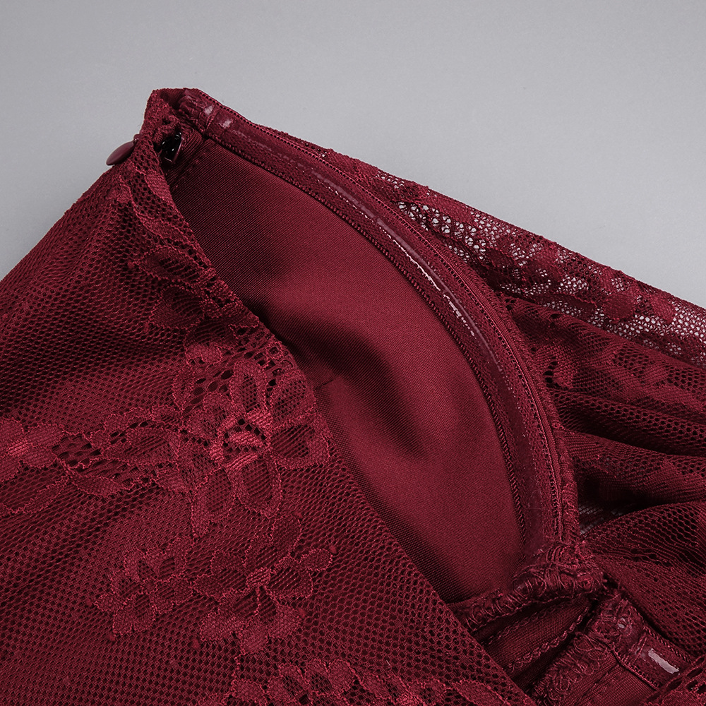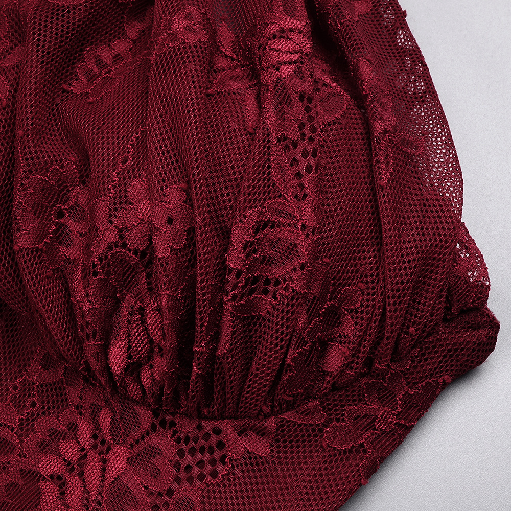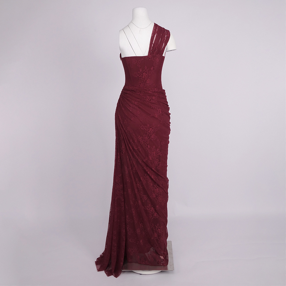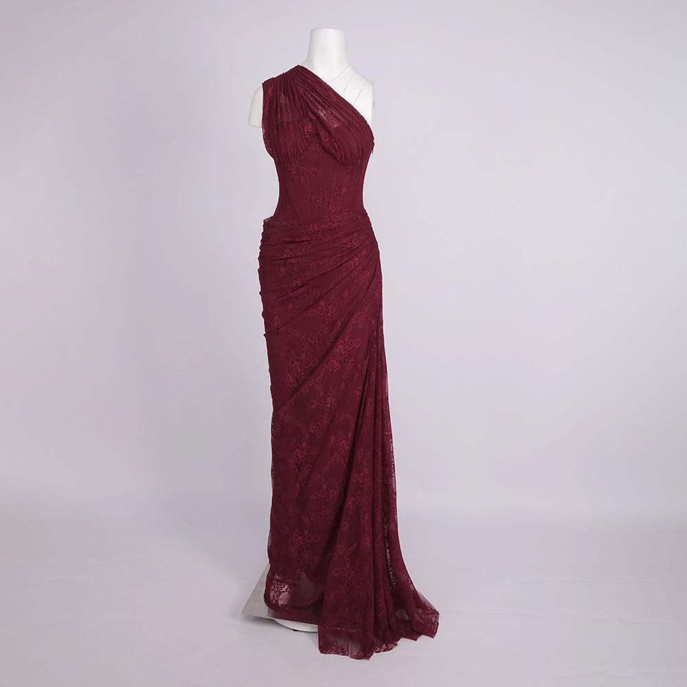 Luxurious One-Shoulder Wine Red Lace Gown - Asymmetric Corset Style Ruched Maxi Dress BD2677