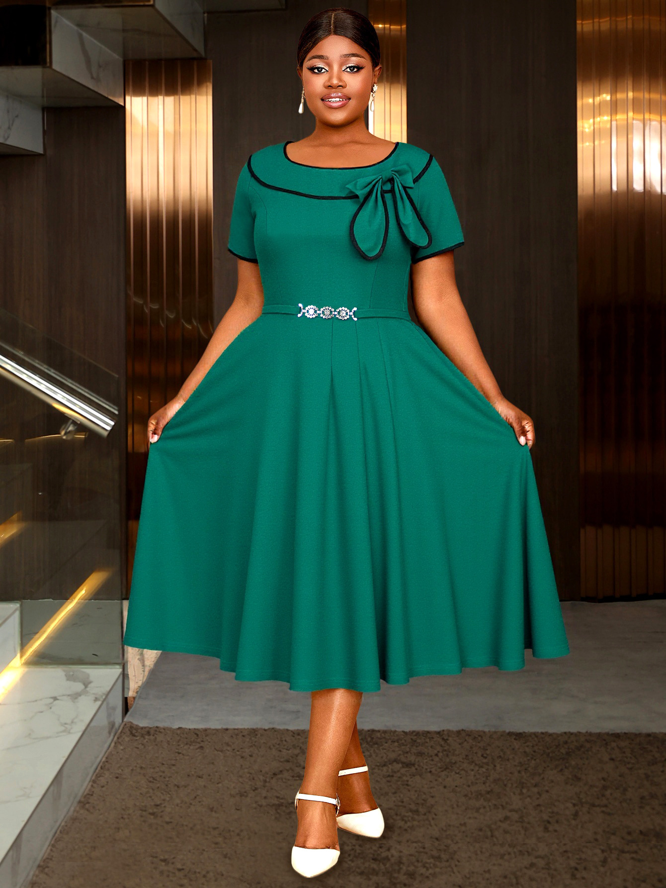 Plus-Sizes Elegant Midi Dress with Pleated Skirt AM050530