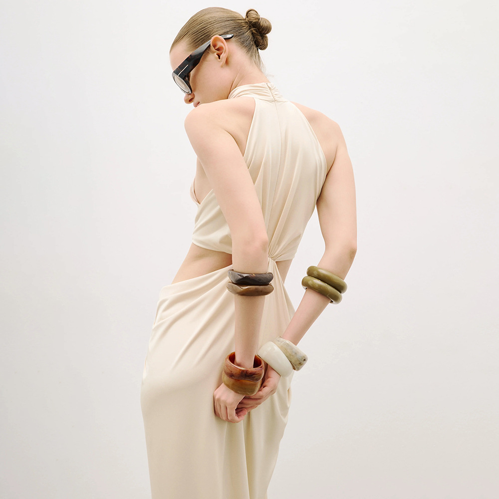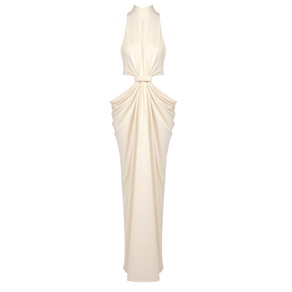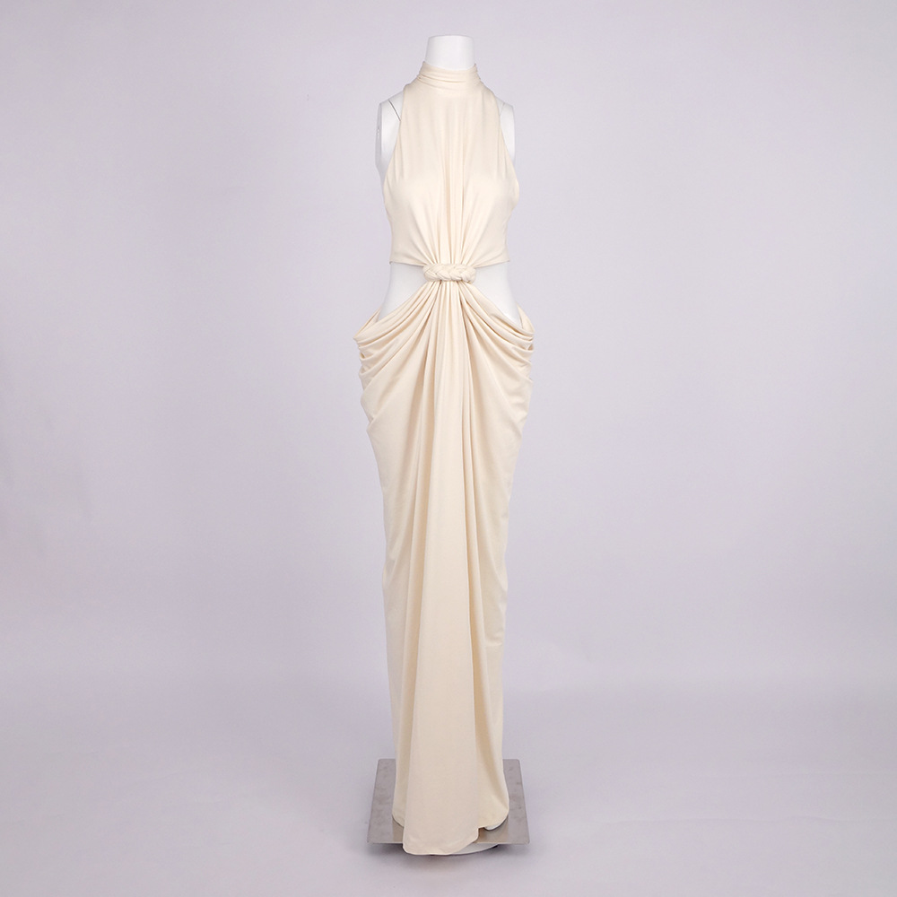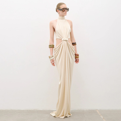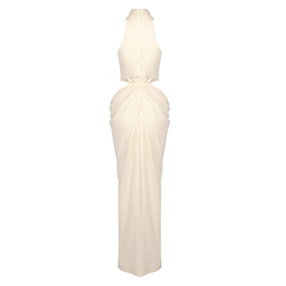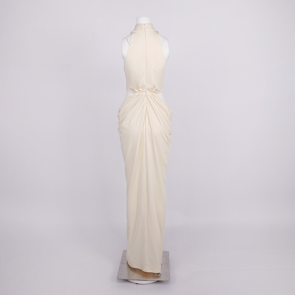 Twisted Hollow Out Draped Long Dress Winter New Women's High Neck Sleeveless Waist-Exposing Niche Dress Fashion