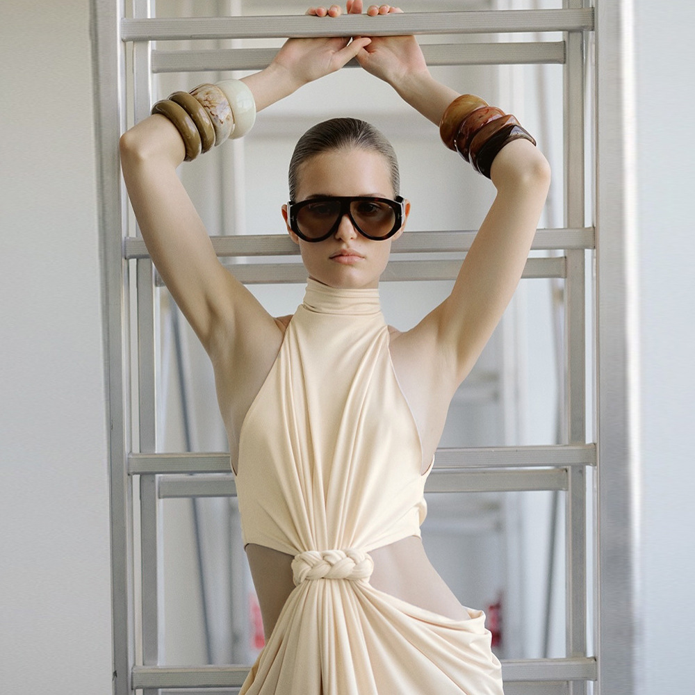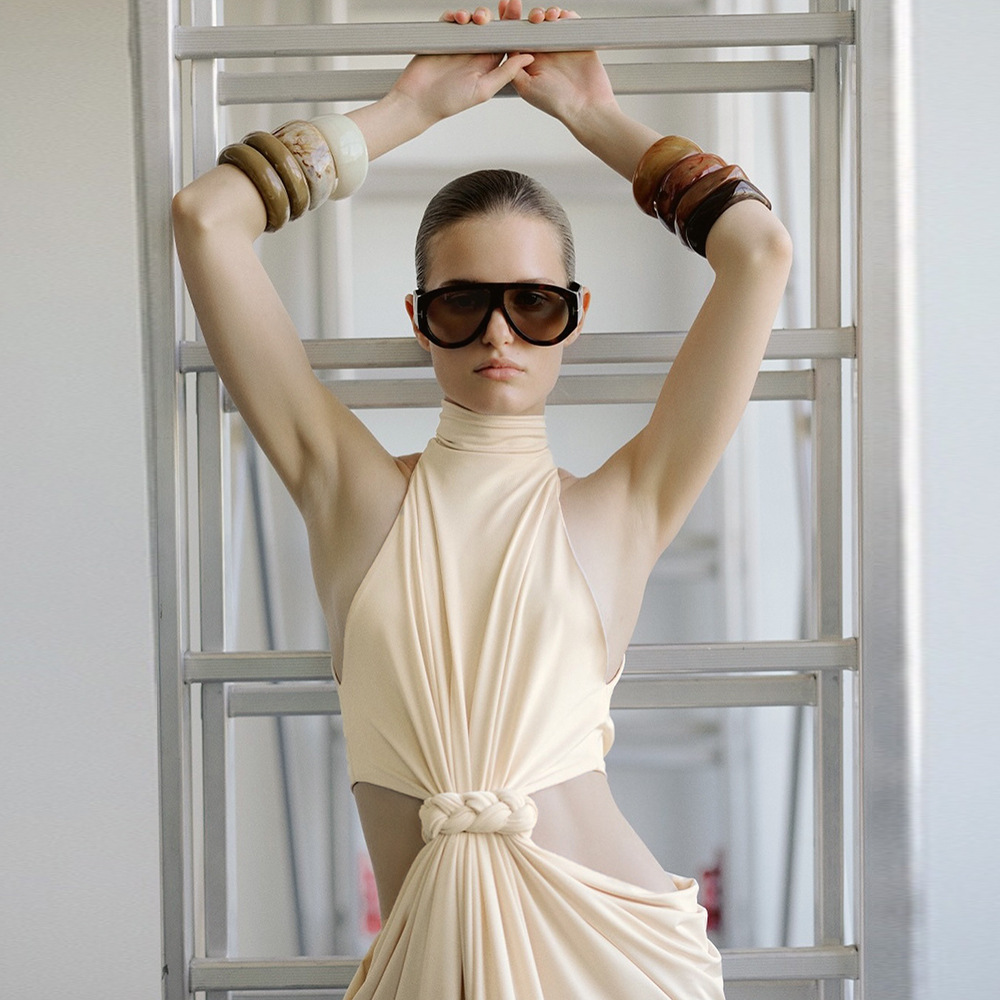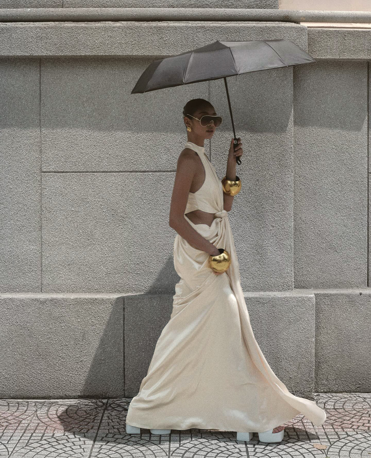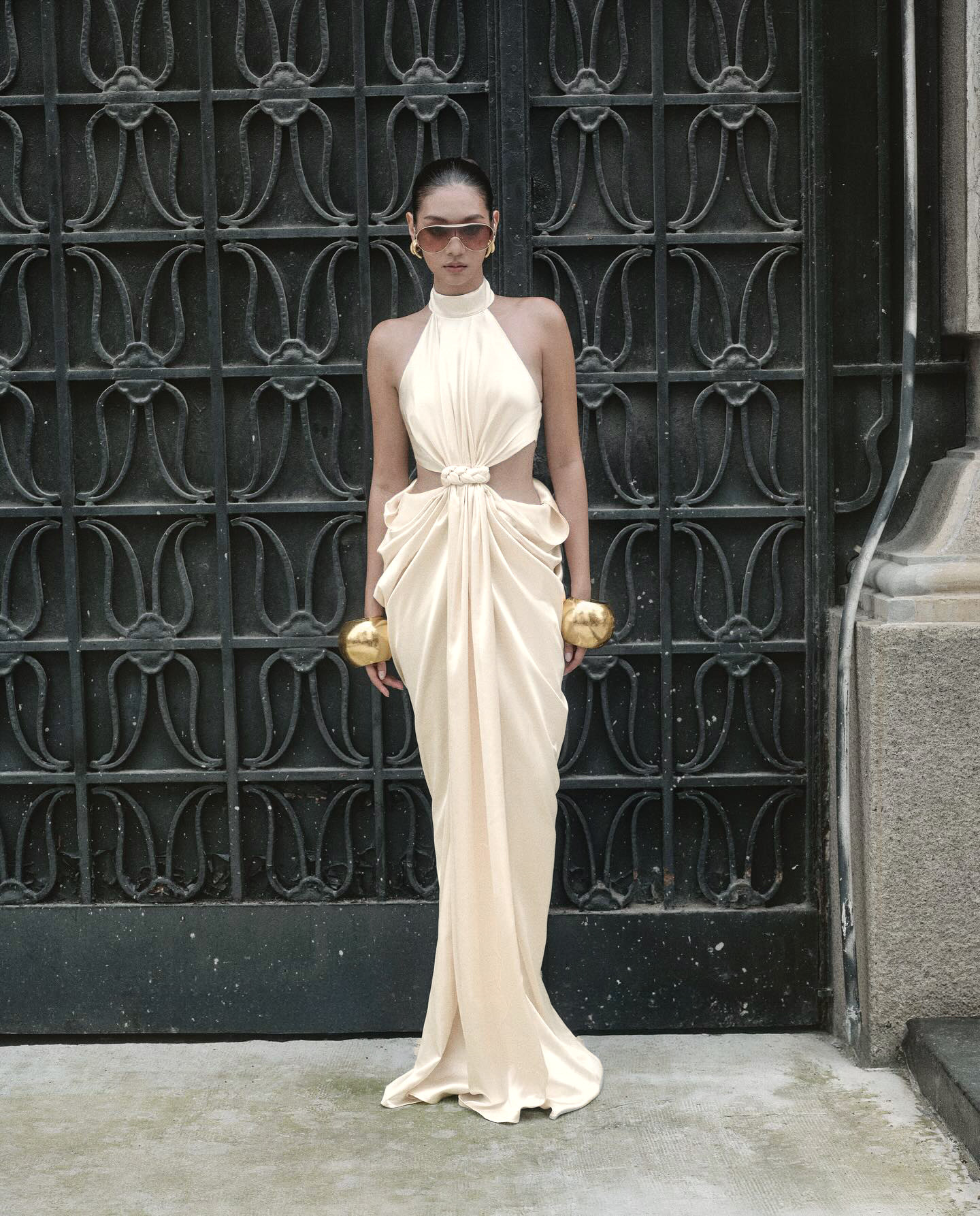 Twisted Hollow Out Draped Long Dress Winter New Women's High Neck Sleeveless Waist-Exposing Niche Dress Fashion
